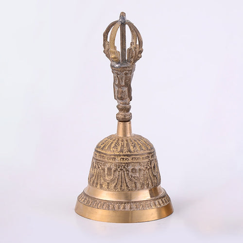 FengShui Loud Call Meditation Hand Bell Lucky Dinner Prayer Alarm Portable Desktop Tea Tibetan Buddhist Service Handmade Brass