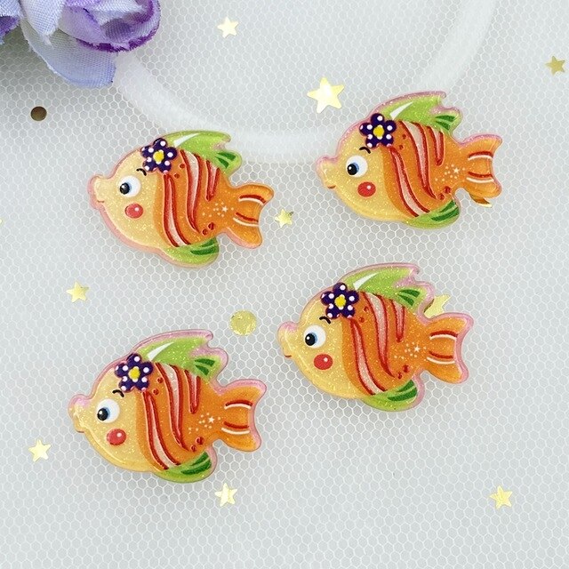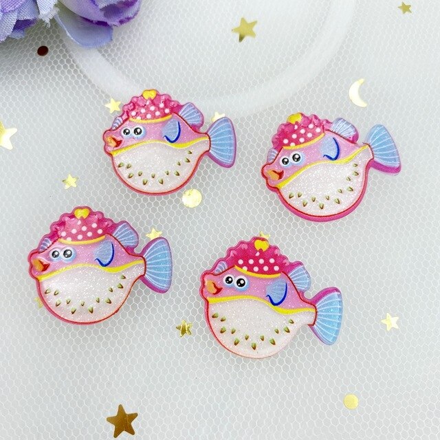 10pcs/lot kawaii Acrylic Cute Shining Ocean Series flatback cabochons For Hair Bow Centers DIY Scrapbooking Decor C33